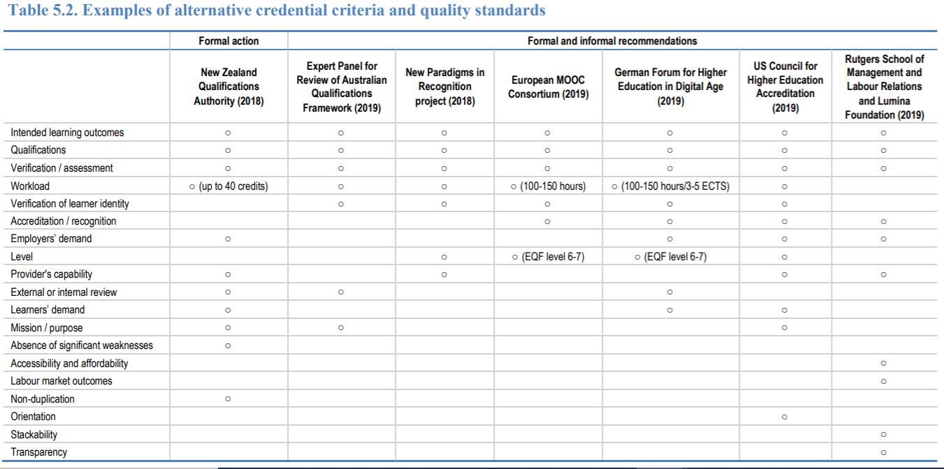 The following image from the OECD (Kato et al) report shows how alternative credentials fit with other qualifications: