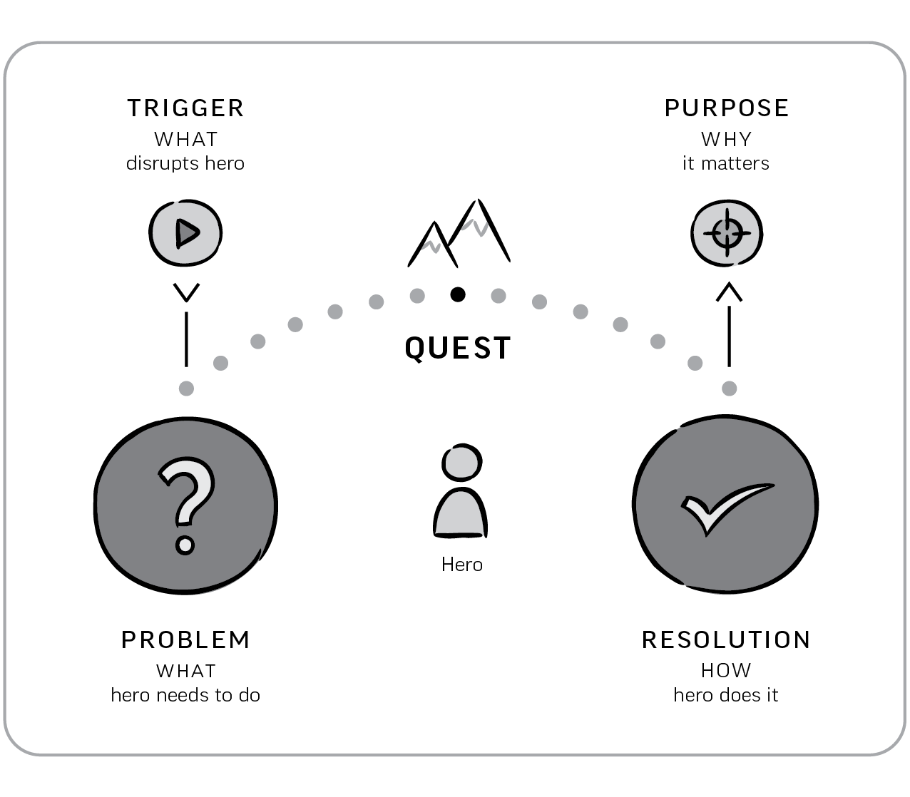 - Follow the Problem, Quest, Resolution structure. Remember that the learning happens in the gap, where the hero has to overcome an obstacle. So make sure your story has obstacles!